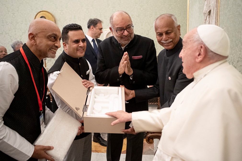 Dr Sanghrajka presented Pope Leo XIV with a copy of the Tattvārthasūtra