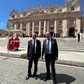 Dr Mehool Sanghrajka and Dilip Shah, directors of the Institute of Jainology (IOJ), attended the funeral of His Holiness Pope Francis at St Peter’s Basilica in Vatican City today, representing the Jain community in the United Kingdom and around the world.